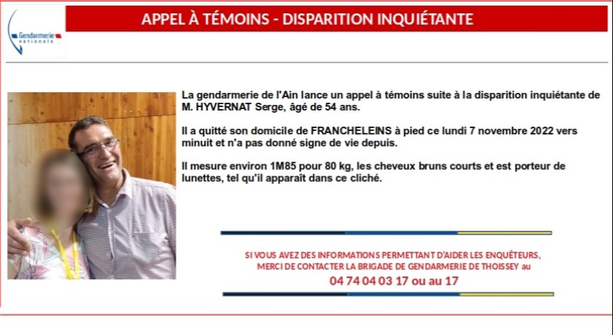 Maj: Le corps sans vie de Serge Hyvernat a été retrouvé en pleine nature sur la nature lors d'une battue. Selon les premiers éléments, il a mis fin à ses jours.