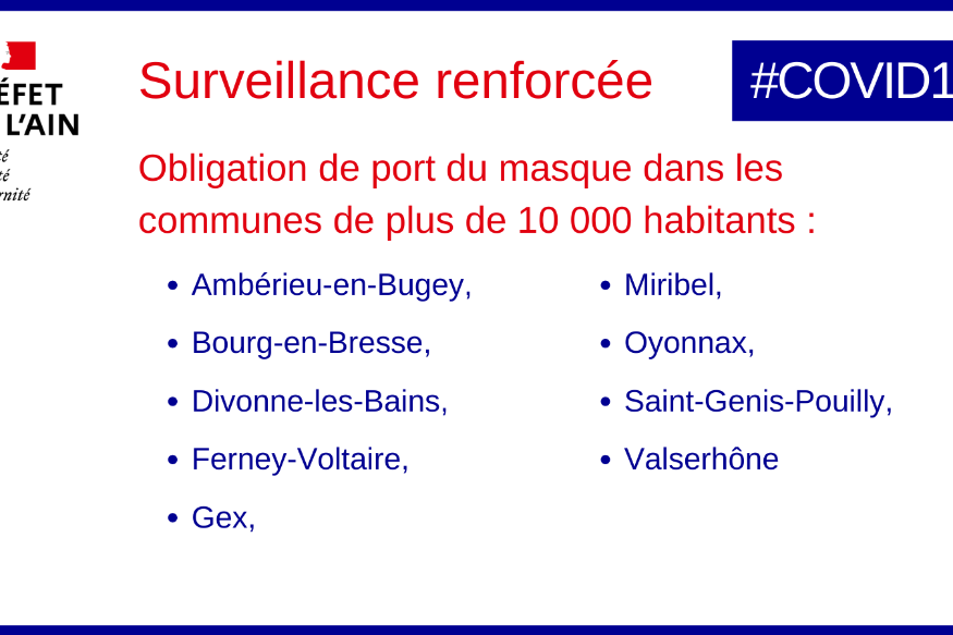 FC Radio - Accélération des contaminations à la Covid-19 : le département de l’Ain est placé sous surveillance renforcée. De nouvelles mesures de freinage entreront en vigueur ce week-end.