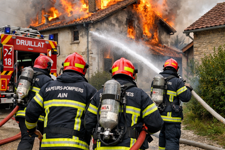 Une maison détruite par le feu à Druillat