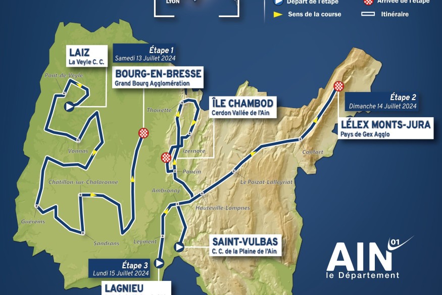 Tour de France, Tour de l'Ain, Ain Bugey Valromey Tour. Trois grandes et belles épreuves cyclistes dans l'Ain, dont la plus prestigieuse, auront lieu pendant le mois de juillet 2024.