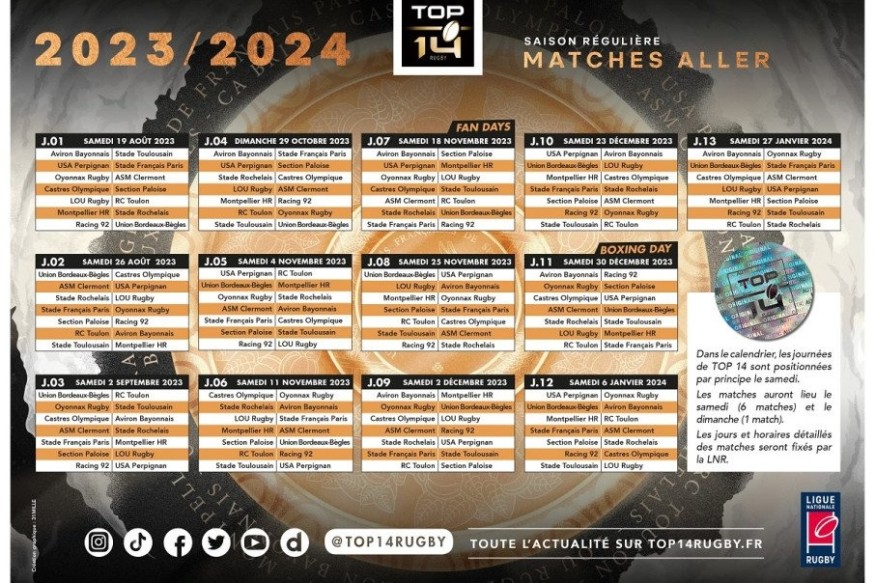 Le calendrier du Top 14, avec Oyonnax Rugby, est connu