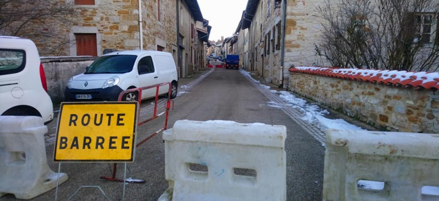 La mairie de Val Revermont précise que comme il faut une grande grue pour atteindre la partie du toit effondré, le bas de la Grand Rue est fermé à la circulation pendant un mois.
